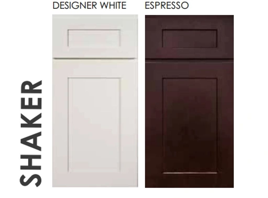 Bright, crisp and modern, this cabinet has a versatile appeal. The design incorporates the architectural shaker styling with pleasing proportions. Available with a slab or 5-piece drawer front for a contemporary or classic look.